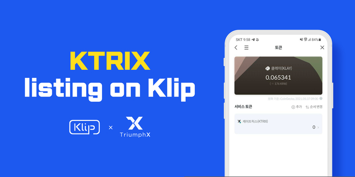 크로스체인 탈중앙 NFT 플랫폼 개발사 트라이엄프엑스(TriumphX)는 TRIX가 그라운드X의 디지털 자산 지갑 서비스 클립(Klip)에 등록되었다고 전했다.