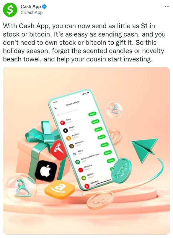 코인데스크에 따르면 미국 결제 대기업 블록(전 스퀘어)이 비트코인 거래 주요 허브인 결제 어플리케이션 캐시앱(Cash App)에 비트코인 선물 기능을 출시했다. 캐시앱은 공식 트위터를 통해 "현금을 송금하는 것만큼 쉽고 간편하게 주식 혹은 비트코인을 선물할 수 있다. 이를 위해 주식, 비트코인을 보유할 필요도 없다"고 전했다. 최소 결제 금액은 1달러다.