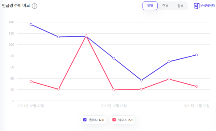 그렇다면, 대중의 시선으로 본 솔라나와 이오스의 이미지는 어떨까? 빅데이터 분석 플랫폼 썸트렌드와 함께 확인해보자.
