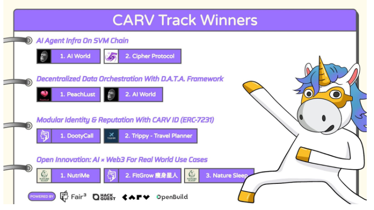CARV는 세계 최초의 주권형 AI 존재(Sovereign AI Being)를 위한 AI 인프라 기업으로, FAIR3 및 HackQuest와 공동으로 개최한 ‘Tech Fairness Hackathon’을 성공적으로 마무리했다고 밝혔다. 이번 글로벌 해커톤은 AI 및 Web3 기술을 보다 개방적이고 공정하게 구현하는 것을 목표로 진행되었으며, 전 세계에서 600명 이상의 개발자들이 참가해 200개 이상의 프로젝트가 등록되었고, 그 중 30개 팀이 결선에 진출해 최종적으로 21개 수상팀이 선정되었다.