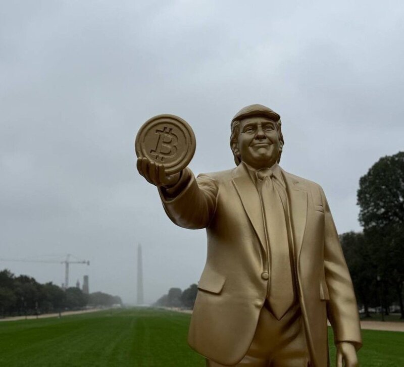 9월 18일(현지시간) 온라인 미디어 더스트리트에 따르면, 높이 12피트에 달하는 황금 트럼프 동상은 암호화폐 투자자 모임이 자금을 조달해 설치했으며, 이들은 트럼프를 “비트코인 대통령”이라고 칭하며 디지털 자산과 통화정책, 정부의 금융시장 개입 문제를 환기하기 위한 퍼포먼스라고 설명했다.