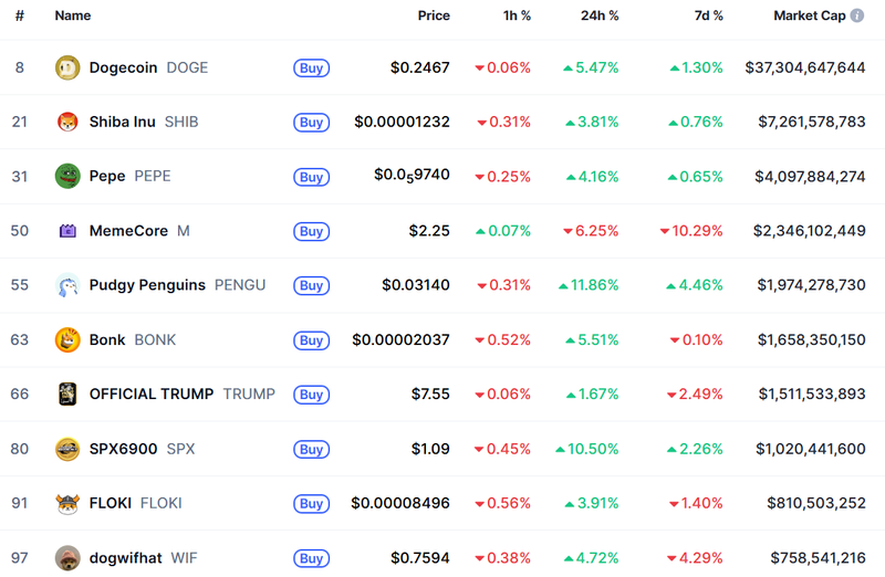 도지코인(DOGE): 시가총액 373억 달러로 여전히 밈코인 중 최상위권. 하루 만에 5% 이상 반등하며 투자 심리를 견인했다.