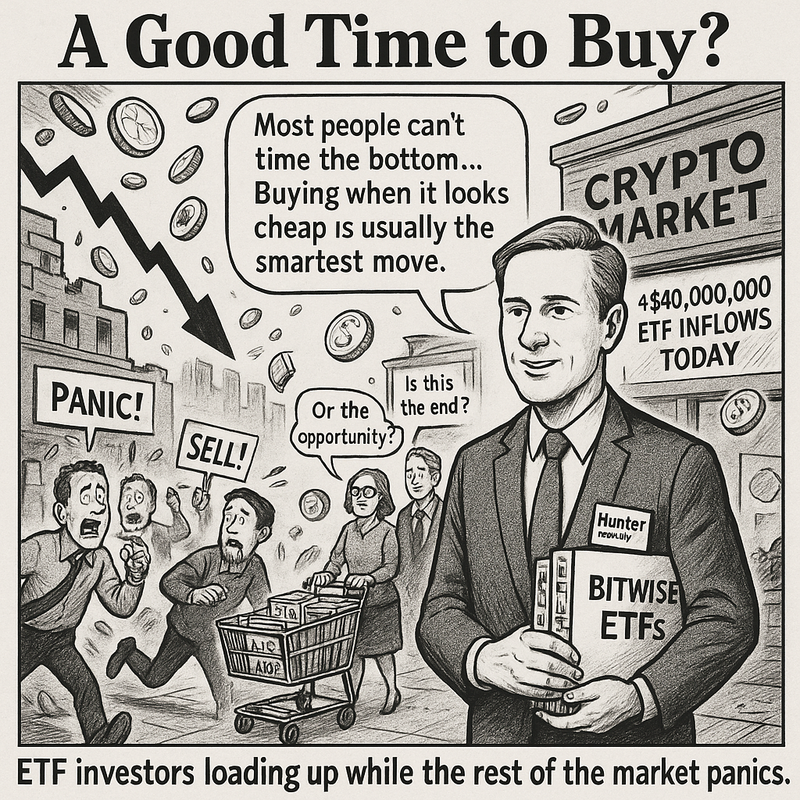 암호화폐 현물 ETF 발행사 비트와이즈(Bitwise) CEO 헌터 호슬리(Hunter Horsley)가 "오늘(현지시간 22일) 비트와이즈 3종 ETF에 총 4,000만 달러 자금이 순유입됐다. 일부 투자자들이 매도에 나서고 있지만, ETF 투자자는 매수 중이다. 대부분의 투자자들이 시장의 저점을 정확히 맞추기 어렵다. 선호하는 자산이 저렴하게 보일 때 매수하는 것이 최선이며, 다수의 투자자들이 현재 가격을 매력적으로 보고 있는 분위기다. 이 순간을 돌아보면 좋은 기회였다고 생각하게 될 것"이라고 X를 통해 밝혔다.