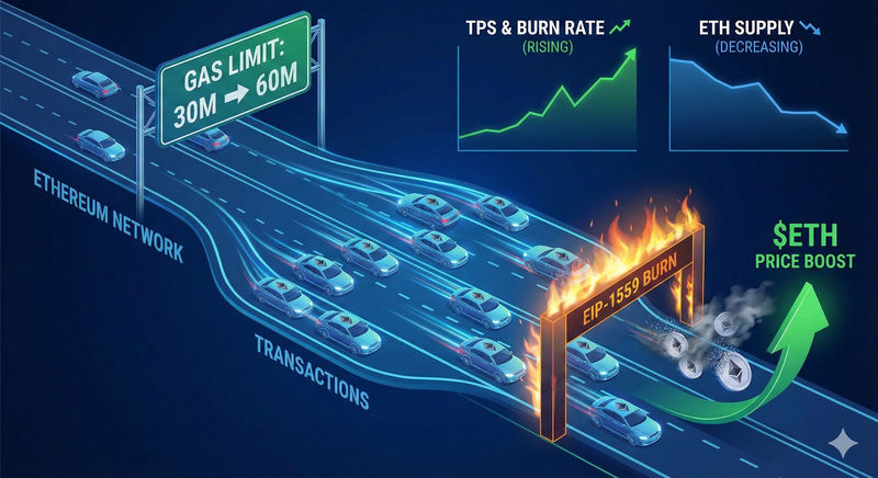 왜 가스 한도 상향이 이더리움 가격 상승의 직접적인 촉매제가 되는지, 그 경제적 메커니즘을 3가지 핵심 포인트로 분석했다.