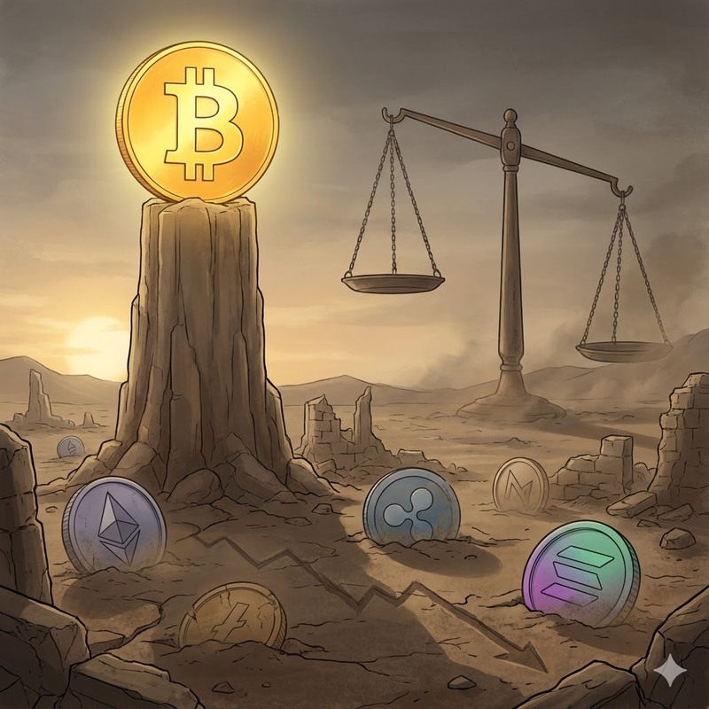 코웬은 이번 사이클이 2022년부터 2025년 고점까지 철저히 비트코인 중심의 상승장으로 전개되었다고 평가했다. 과거 2013년이나 2017년 강세장에서는 비트코인 상승 후 낙수 효과로 인한 알트코인 시즌이 뒤따랐으나 이번에는 비트코인 독주만 지속된 채 사이클이 종료되었다는 설명이다. 그는 비트코인이 확실한 고평가 영역인 유포리아 단계에 진입하지 못했기 때문에 알트코인으로의 자본 이동이 발생하지 않았다고 지적했다.