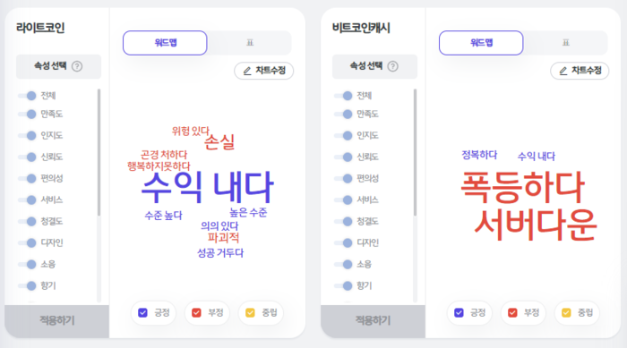 라이트코인과 비트코인캐시에 대한 대중의 생각은 어떨까? 빅데이터 분석 플랫폼 썸트렌드와 함께 확인해 보자.