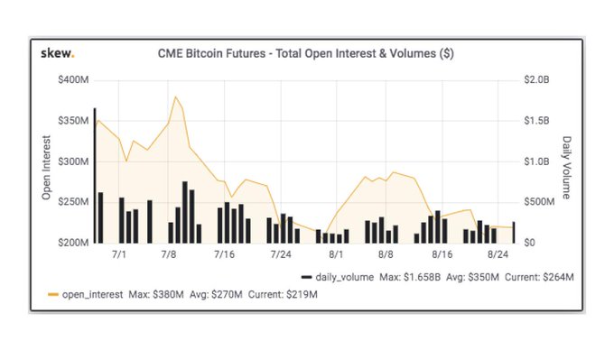 이와 관련해 트위터에서 활동하는 암호화폐 분석가 스큐(Skew)는 이날 트윗을 통해 "이번 만기일에 비트코인 선물 미결제약정(open interest, 선물·옵션계약을 사거나 판 뒤 이를 반대매매하지 않고 그대로 보유하고 있는 선물·옵션계약)의 약 50%가 만료될 것"이라면서 "대다수 기관 투자자들은 다른 투자처에 눈을 돌릴 것"으로 내다봤다.