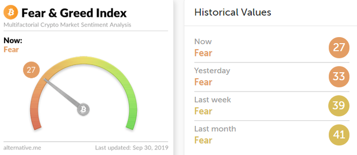 투자심리도 전날보다 위축됐다. 실제 암호화폐 데이터 제공 업체 알터너티브(Alternative)의 자체 추산 '크립토 공포·탐욕 지수(Crypto Fear & Greed Index)'는 전날(33) 보다 6포인트 하락한 27을 기록했다. 이는 투자 심리가 전날보다 악화됐음을 의미하며, '공포(Fear)' 단계가 지속되고 있다. 해당 지수는 0에 가까울수록 시장의 극단적 공포를 나타내며, 100에 가까울수록 극단적 낙관을 의미한다.