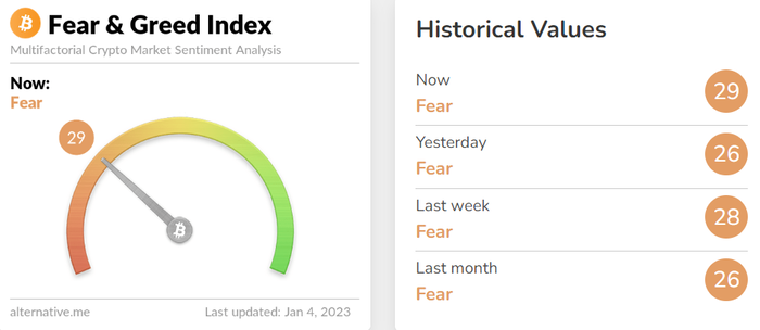 투자심리는 전날보다 다소 개선된 모습이다. 이날 암호화폐 데이터 제공 업체 얼터너티브(Alternative)의 자체 추산 '공포·탐욕 지수'는 전날보다 3포인트 오른 29를 기록했다. 다만 '공포' 단계는 지속됐다. 해당 지수는 0에 가까울수록 시장의 극단적 공포를 나타내며, 100에 가까울수록 극단적 낙관을 의미한다.
