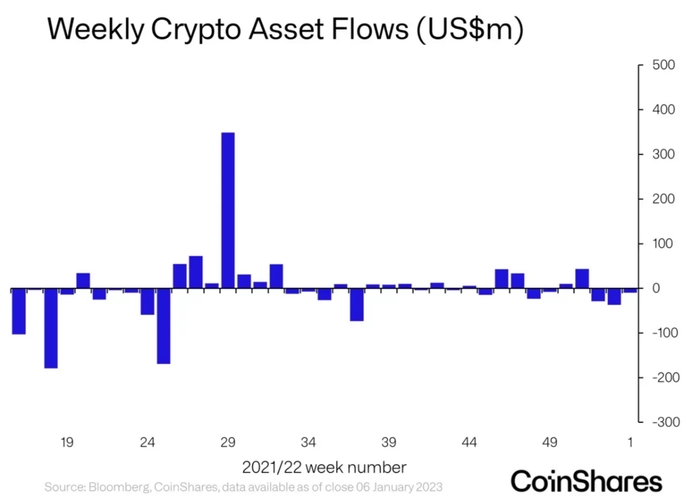 9일(현지시간) 암호화폐 투자펀드 코인셰어즈(Coinshares)의 '디지털 자산 주간 펀드 흐름 보고서'(Digital Asset Fund Flows Weekly Report)에 따르면, 암호화폐 투자 상품에서 총 970만 달러의 유출이 발생해 지난 3주 동안 지속된 경미한 부정적인 투자심리가 지속되고 있음을 보여줬다.