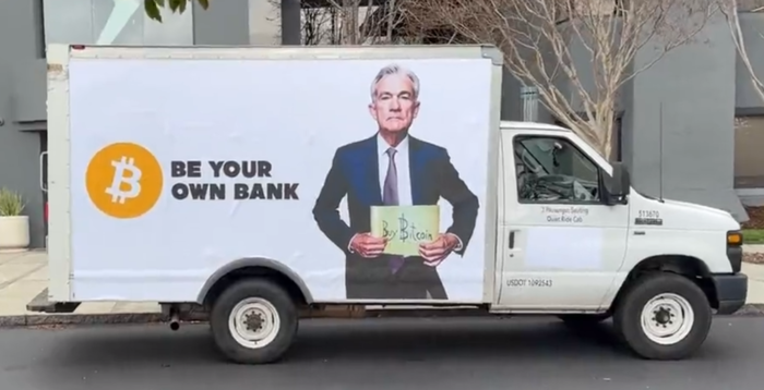 해당 트럭 광고판에는 'Be Your Own Bank'라는 메시지가 적혀 있다. 현재 여러 국가 방송사들이 이를 보도하고 있다고 미디어는 전했다.