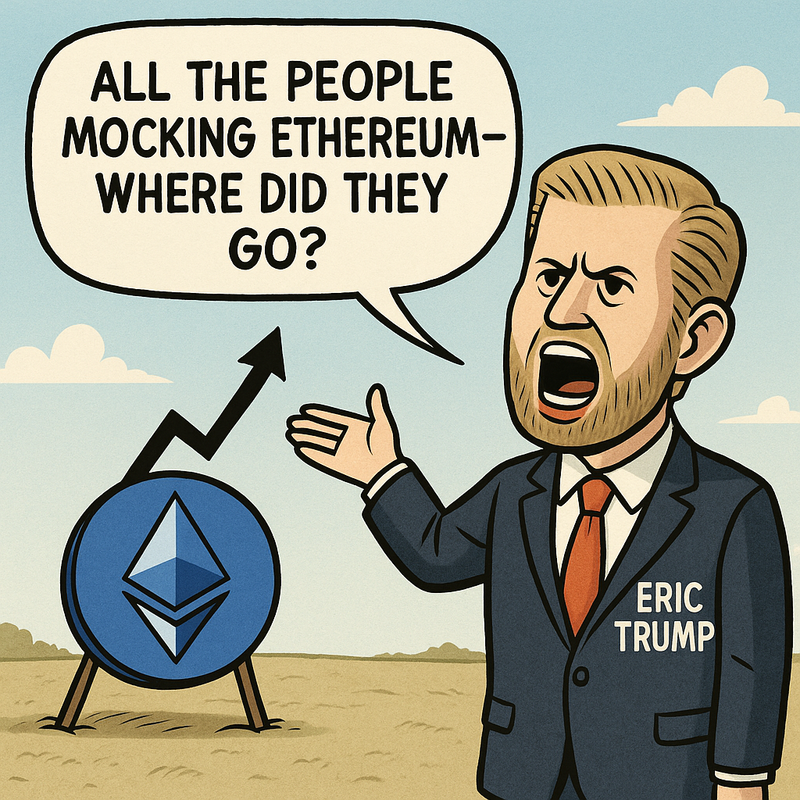 도널드 트럼프 미국 대통령의 차남 에릭 트럼프가 과거 이더리움(ETH) 매수를 권유하던 자신을 비웃던 사람들에게 "지금 기분이 어떻느냐"고 응수했다. 앞서 그는 지난 2월 "이더리움을 담기 좋은 시기"라고 포스팅했고 이후부터 ETH 가격이 약 40% 이상 하락하자 온갖 조롱을 받았다. 하지만 최근 ETH 가격이 상승하자 그는 22일 X에 "ETH 매수 포스팅 이후 5개월이 지났고 가격은 35%나 올랐다. 친구들, 변동성을 받아들여라"라고 포스팅했다.