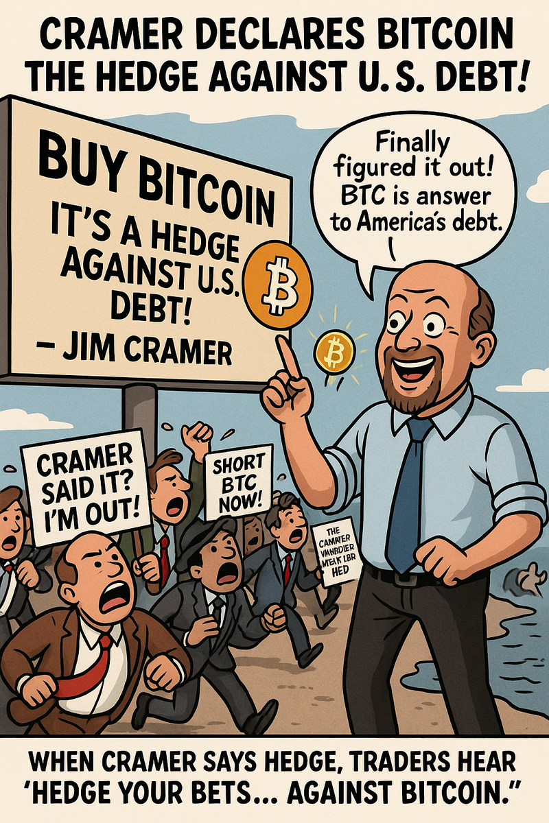 CNBC 매드머니 진행자 짐 크레이머(Jim Cramer)가 "비트코인(BTC)은 미국 재정적자에 대한 헷지수단"이라고 말했다고 유투데이가 전했다. 주식 및 크립토 커뮤니티에서 짐 크레이머는 시장을 반대로 예측해 '인간지표'라는 조롱을 받는 인물이다.