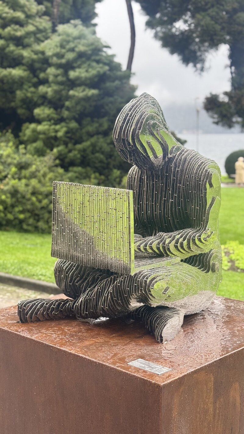 이 조형물은 이탈리아 조각가이자 비트코인 지지자인 발렌티나 피코치(Valentina Picozzi)가 디자인했으며, 304 스테인리스강과 코르텐 강재로 제작돼 2023년 10월 공개됐다. 특히 앞뒤에서 보면 사라지는 구조로, ‘우리는 모두 사토시다’라는 익명성과 분산성을 상징한다. 설치 위치는 매년 열리는 블록체인 포럼 ‘플랜B 포럼’ 개최지인 빌라 치아니 정면이었다.