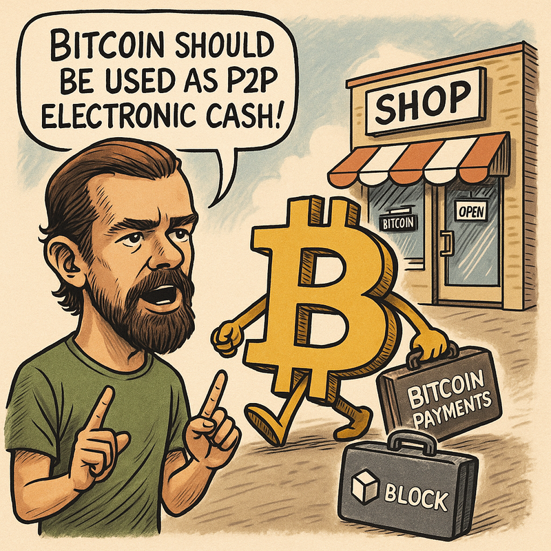 트위터(현 X) 공동 창업자이자 대표적인 비트코인(BTC) 맥시멀리스트 잭 도시가 "비트코인이 당초 설계된 대로 개인간거래(P2P) 전자 현금이자 일상적인 결제 수단으로 사용되길 원한다"고 말했다. 한편 잭 도시의 결제회사 블록(구 스퀘어)은 최근 중소기업 대상 비트코인 뱅킹 서비스, 모듈식 비트코인 채굴 시스템 등을 출시한 바 있다.