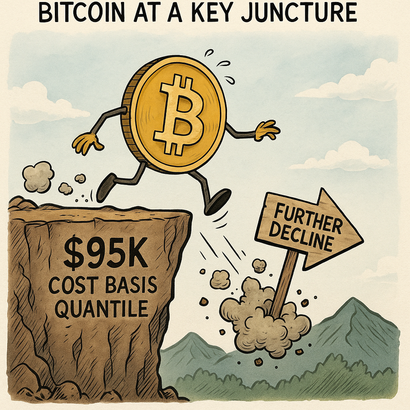 글래스노드는 "비트코인(BTC)이 0.95 비용 기준 분위수(Cost Basis Quantile) 밑으로 떨어졌다. 이는 통상 투자자들이 이익 실현에 나서는 핵심 리스크 구간으로 여겨진다. 이 구간을 회복하면 반등 신호가 될 수 있지만, 그렇지 못할 경우 하방 지지선인 10만5천 달러~9만 달러 사이로 추가 하락할 수 있는 우려가 있다"고 진단했다.