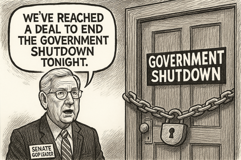 [코툰] "오늘밤 셧다운 종료될 것" 존 튠 미 공화당 상원 원내대표가 "오늘밤(현지시간) 정부 셧다운(일시 업무 정지)이 종료될 수 있도록 합의에 도달했다"고 말했다고 월터블룸버그가 전했다.