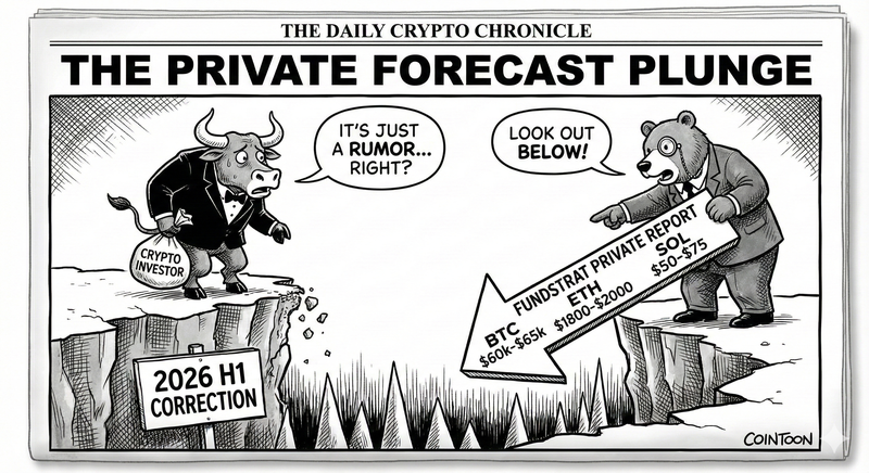 미국 시장조사업체 펀드스트랫(Fundstrat)이 내부 문건으로 추정되는 비공개 암호화폐 시장 보고서를 통해 “2026년 상반기 암호화폐 시장에서 의미 있는 조정이 발생할 수 있으며, 비트코인(BTC)은 60,000~65,000달러, 이더리움(ETH)은 1,800~2,000달러, 솔라나(SOL)는 50~75달러까지 하락할 수 있다”고 전망했다고 코인텔레그래프가 전했다. 해당 보고서는 현재까지 펀드스트랫 공식 채널을 통해 공개된 바 없으며, 우블록체인 등 복수의 암호화폐 업체들은 해당 보고서가 일부 프라이빗 클라이언트 등을 대상으로 배포된 자료라고 전했다. 보고서 작성자는 펀드스트랫 디지털자산 전략 헤드인 션 패럴(Sean Farrell)로 알려졌다.