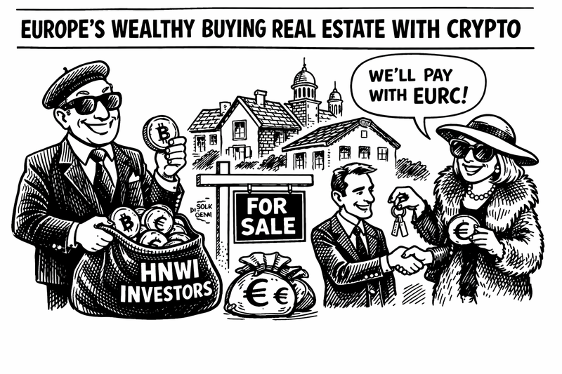 수백 명의 부유한 투자자들이 암호화폐로 유럽 부동산을 매입하고 있다고 코인데스크가 전했다. 브라이티(Brighty) 공동 창업자이자 레볼루트(Revolut)의 전 수석 백엔드 엔지니어였던 니콜라이 데니센코는 자신의 스타트업 브라이티(Brighty)가 유럽의 고액 자산가(HNWI)들을 위해 100건 이상의 아파트 매입 거래를 성사시켰다고 밝혔다. 부유층 고객들은 환전 수수료를 피하기 위해 EURC 같은 유로화 스테이블코인을 선호하고 있다.