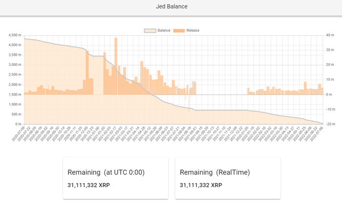 블록체인 기반 해외송금 프로젝트 리플(Ripple, XRP)의 전 최고기술책임자(CTO) 제드 맥칼렙(Jed Mccaleb)의 지갑 기록 추적 웹사이트 제드밸런스(Jed Balance)의 데이터에 따르면 9일 기준 맥칼렙의 지갑에는 31,111,332 XRP가 남아 있다. 지난 7일간 맥칼렙은 하루 평균 5,106,318 XRP를 매도했다. 이 추세라면 다음 주 중에 그가 보유한 XRP가 모두 소진될 것으로 예상된다. 한국시간 9일 오전 10시 8분 현재 시가총액 7위 암호화폐 리플(XRP) 시세는 0.3414달러를 기록 중이다. XRP는 지난 7일간 9.49% 올랐다. 시가총액도 약 165억 달러까지 증가하며, 카르다노(ADA, 시총 약 158억 달러)를 제쳤다.