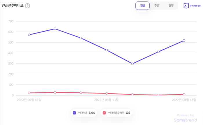 8월 10일부터 8월 16일까지 일주일간 이더리움은 3,405회, 이더리움클래식은 116회 언급됐다.