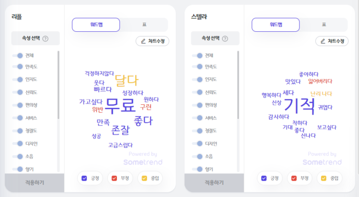 리플의 이미지는 긍정 62%, 부정 28%, 중립 11%로, 긍정적인 이미지를 보유한 것으로 확인됐다. 주요 감성어 중, 긍정적인 표현은 ‘무료’, ‘좋다’, ‘빠르다’, ‘원하다’, ‘성장하다’, ‘만족’, ‘걱정하지 않다’, ‘성공’ 등이 있다. 부정적인 표현은 ‘구린’과 ‘위반’이 있으며, 중립적인 표현은 ‘달다’가 있다.