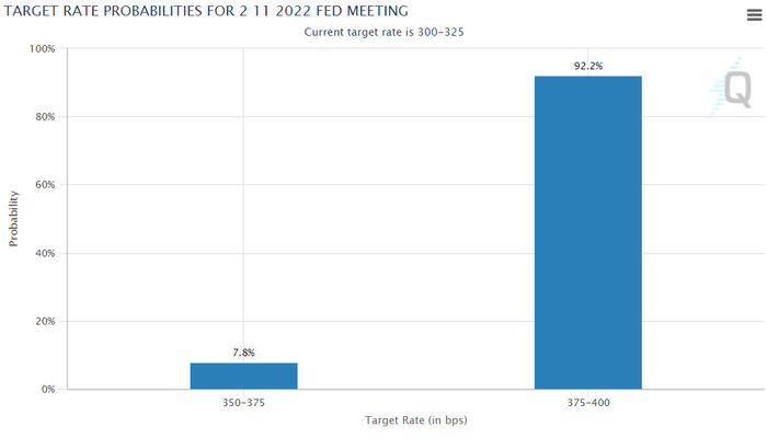 CME 페드워치 "11월 기준금리 75bp 인상 가능성 92.2% 달해...12월은 48.7% 그쳐"10월 23일(현지시간) 시카고상품거래소(CME) 그룹의 페드워치에 따르면 이날 오전 5시 49분(현지시간) 현재 미 연방준비제도(Fed·연준)가 11월 2일 예정된 공개시장위원회(FOMC) 회의에서 기준금리를 75bp(0.75%포인트, 1bp=0.01%포인트) 인상할 확률은 92.2%에 달했다. 50bp 금리 인상 가능성은 7.7%에 불과했다. 100bp 인상 가능성은 0%로 점쳐지고 있다. 12월 14일 회의에서 '자이언트 스텝(한 번에 0.75%포인트 금리인상)' 가능성은 48.7% 수준이다. 현재 미국의 기준금리는 3.00~3.25% 수준이다. 앞서 지난주 미국 월스트리트저널(WSJ)은 연준이 오는 11월 FOMC에서 또 한 번의 0.75%포인트 금리 인상을 단행할 것으로 보이지만, 12월에는 금리 인상 폭을 0.5%포인트로 낮출 가능성이 있다고 보도했다.
