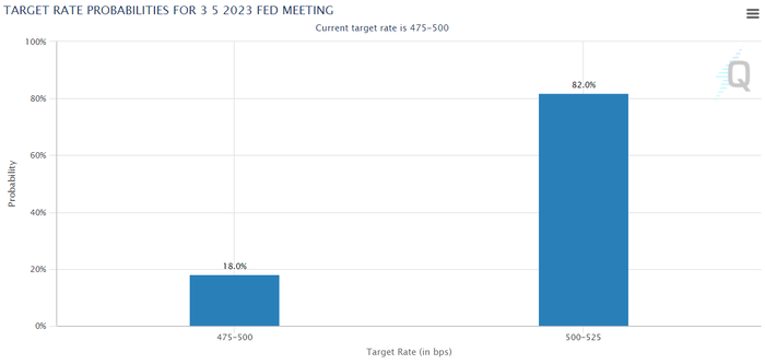 CME 페드워치 "5월 美기준금리 0.25%p 인상 확률 84.6% 달해...동결 가능성 15.4% 그쳐"4월 18일(현지시간) 시카고상품거래소(CME) 그룹의 페드워치에 따르면 이날 오전 9시 3분 현재 시점 미 연방준비제도(Fed·연준)가 오는 5월 3일 예정된 연방공개시장위원회(FOMC) 회의에서 기준금리를 25bp(0.25%포인트, 1bp=0.01%포인트) 인상할 확률은 84.6%에 달했다. 동결할 가능성은 15.4%에 그쳤다. 6월에 추가로 금리를 0.25%포인트 인상할 가능성도 19.2%를 기록했다. 현재 미국의 기준금리는 4.75~5.00% 구간이다.