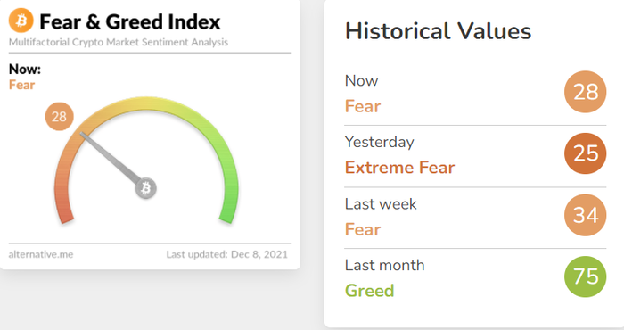 암호화폐 데이터 제공 업체 알터너티브(Alternative)의 자체 추산 '공포·탐욕 지수'가 전날보다 3 포인트 오른 28을 기록했다. 투심이 소폭 개선되며 극단적 공포 단계에서 공포 단계로 전환됐다. 해당 지수는 0에 가까울수록 시장의 극단적 공포를 나타내며, 100에 가까울수록 극단적 낙관을 의미한다. 공포 탐욕 지수는 변동성(25%), 거래량(25%), SNS 언급량(15%), 설문조사(15%), 비트코인 시총 비중(10%), 구글 검색량(10%) 등을 기준으로 산출된다.