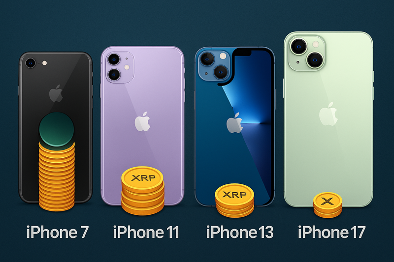 9월 14일(현지시간) 암호화폐 전문매체 워처구루에 따르면, XP마켓이 집계한 자료는 아이폰 시리즈별 XRP 환산 가격 변화를 상세히 보여준다. 아이폰7 시절 XRP 가치가 낮았던 탓에 9만 개가 넘는 토큰이 필요했지만, 시간이 지남에 따라 XRP 가치가 올라가면서 구매력이 눈에 띄게 개선됐다.
