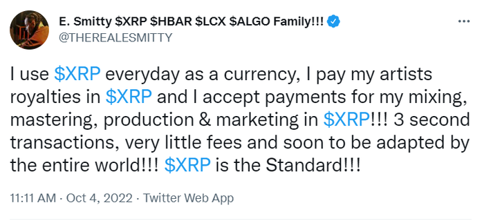미국 '톱' 프로듀서 "매일 XRP로 결제....리플, 글로벌 채택 곧 증가할 것"