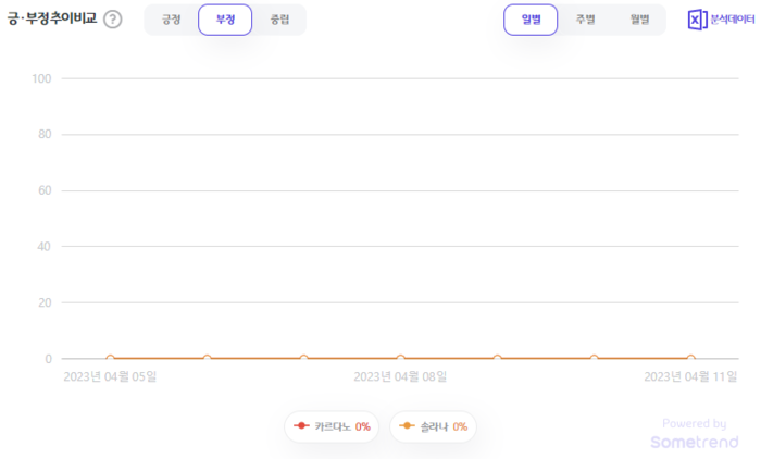 카르다노의 이미지는 긍정 100%, 부정 0%, 중립 0%로, 긍정적인 이미지를 보유한 것으로 확인됐다. 주요 감성어 중, 긍정적인 표현은 ‘보상 받다’, ‘성장세 보이다’가 있다. 부정적인 표현과 중립적인 표현은 없다.