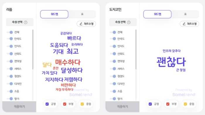 리플과 도지코인에 대한 대중의 생각은 어떨까? 빅데이터 분석 플랫폼 썸트렌드와 함께 확인해 보자.