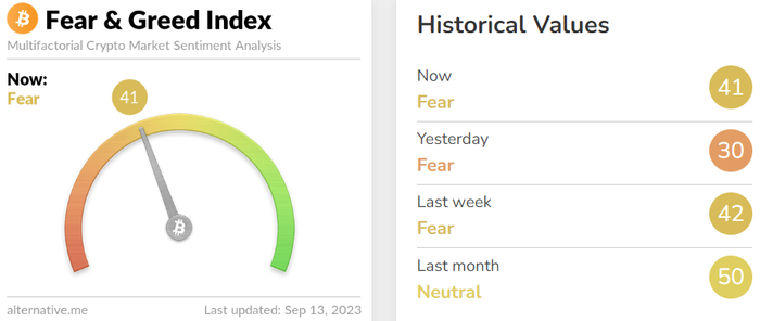이날 암호화폐 데이터 제공 업체 알터너티브(Alternative)의 자체 추산 '공포·탐욕 지수'는 전날 대비 11포인트 오른 41을 기록했다. 다만 '공포' 단계는 계속됐다.